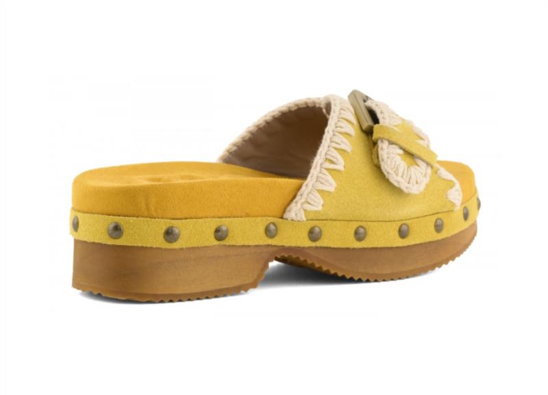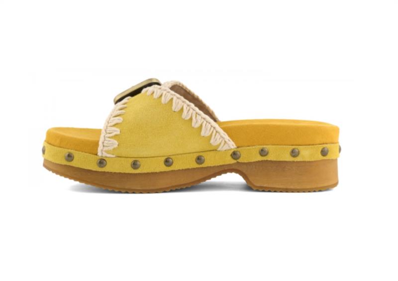 Zueco de madera de tacón bajo con hebilla